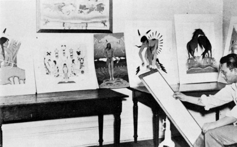 Oscar Howe served three and a half years with U.S. Army combat forces in North Africa, Italy, France and Germany during World War II. He was honorably discharged in 1945 and married Heidi Hampel, whom he had met in Germany. They had one daughter, Inge Dawn. This image shows Howe in his art studio at Dakota Wesleyan University, where he taught art while a student on the G.I. Bill. DWU published this image in its 1950 and 1951 yearbooks. While in Mitchell, Howe began designing the murals for the Corn Palace. He graduated from DWU with a bachelor’s degree in 1952 and went on to earn his master of fine arts degree at the University of Oklahoma. He was professor and artist in residence at the University of South Dakota in Vermillion for 25 years. An award-winning artist of international acclaim, he was featured on the television program “This is Your Life” in April 1960. Gov. Ralph Herseth named Howe artist laureate of South Dakota on Oct. 10, 1960. A full-blooded Yanktonai Sioux, Howe was born on May 13, 1915, at Joe Creek, a small community on the Crow Creek Reservation in South Dakota. He died on Oct. 7, 1983, at Vermillion. Photo submitted by the Dakota Wesleyan University Archives.
