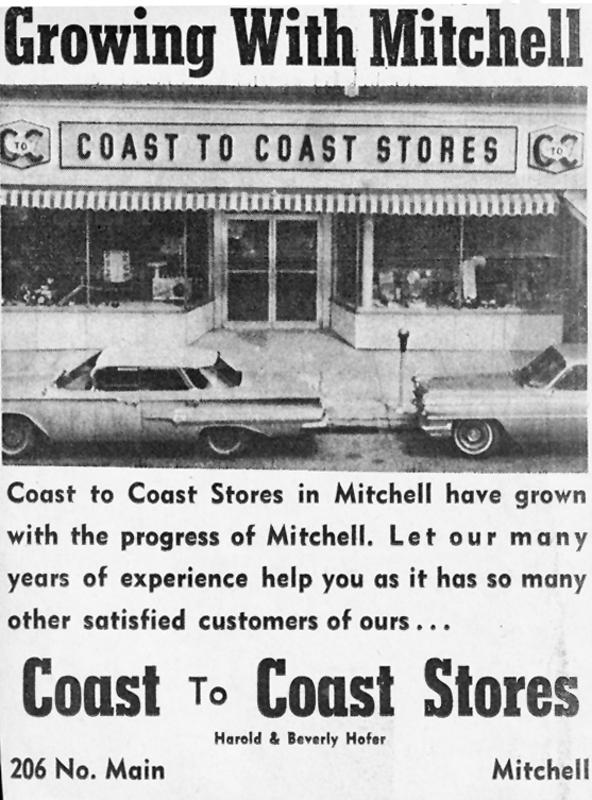 John Wipf and his wife Clara started the Coast to Coast hardware franchise in Freeman and the business continued to expand. John and Clara's children – Beverly, Orville and Willis – became involved in the family operation. In 1961, Beverly married Harold A. Hofer and moved to Mitchell where they started the Coast to Coast store.